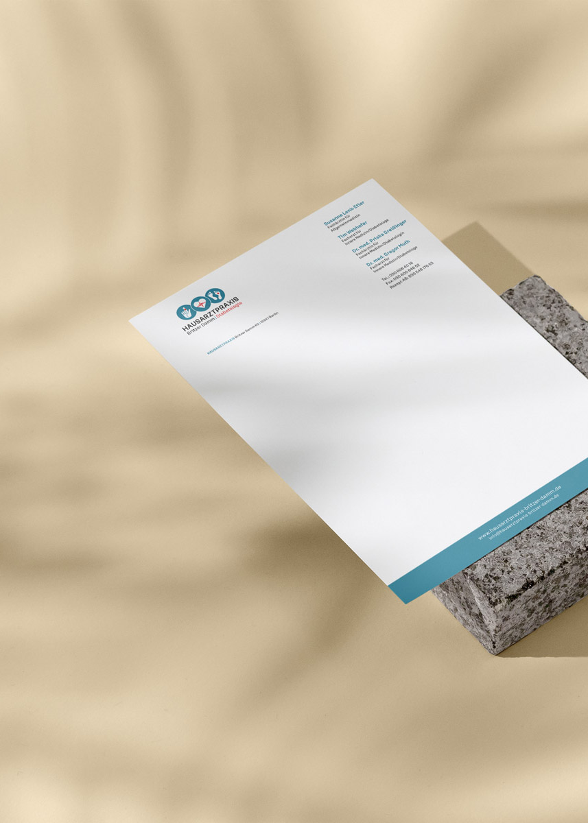 Für die Hausarztpraxis am Britzer Damm haben wir eine Corporate Identity entwickelt. Umgesetz in der Geschäftsausstattung, Praxisleitsystem und Fotos für die Webseite.
